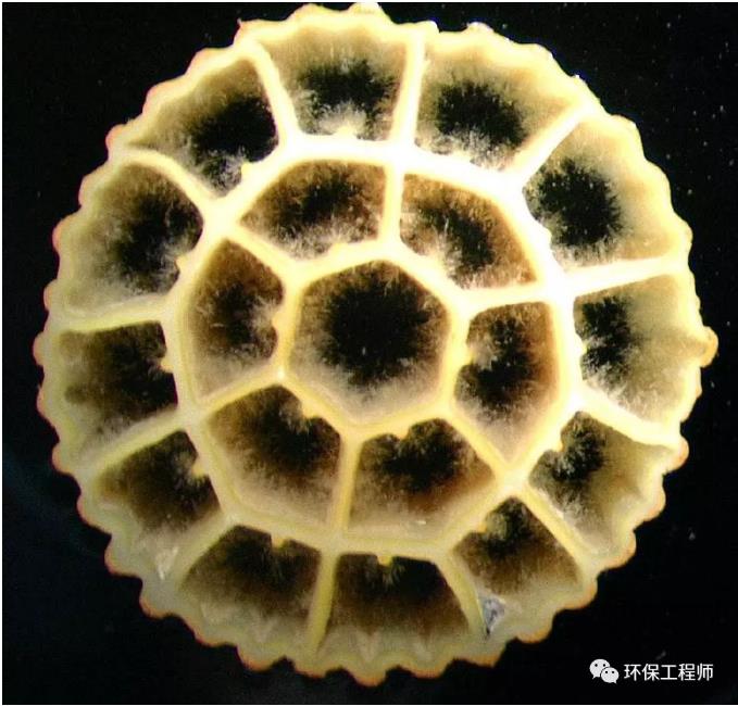 生物膜均勻分布于載體表面,越靠近載體表面越致密,反之越松散,同時載體顏色變深,標志著載體掛膜進入了成熟期。
